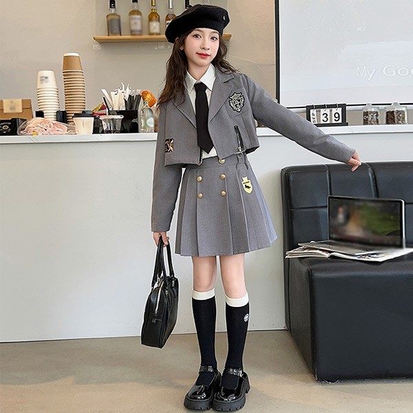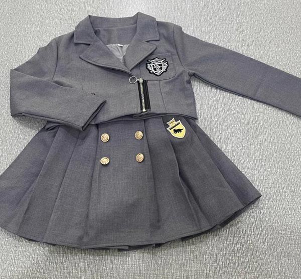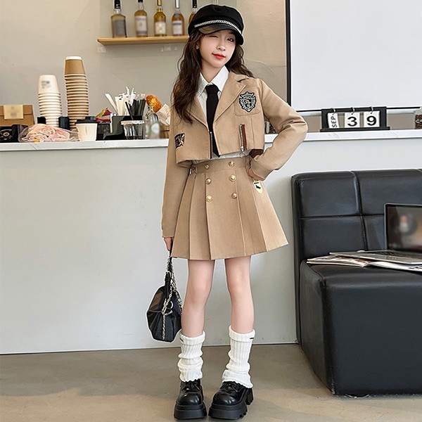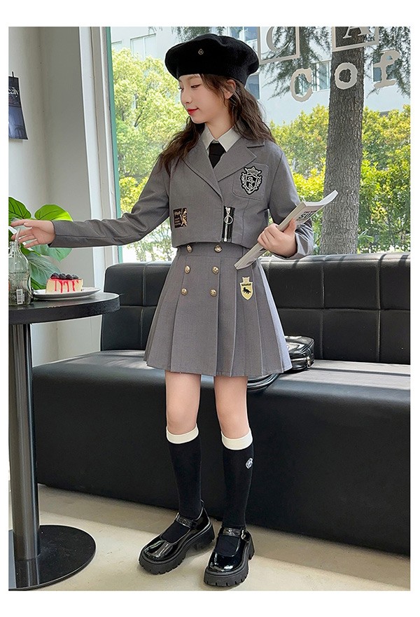 入学式 卒業式 制服 キッズ イギリス風 女の子 春 秋 冬 上下セット ジャケット スカート 小学生 フォーマル 卒服 入園祝い ギフト 卒園式 七五三 お受験 発表会 ベージュ グレー dx017m5
