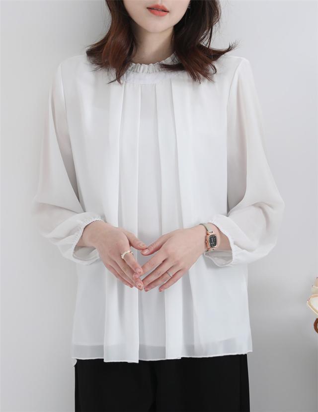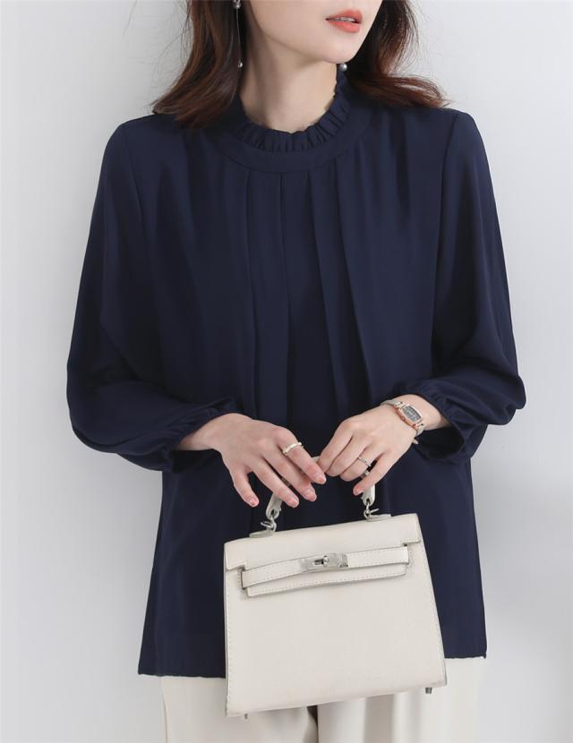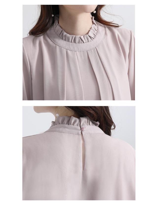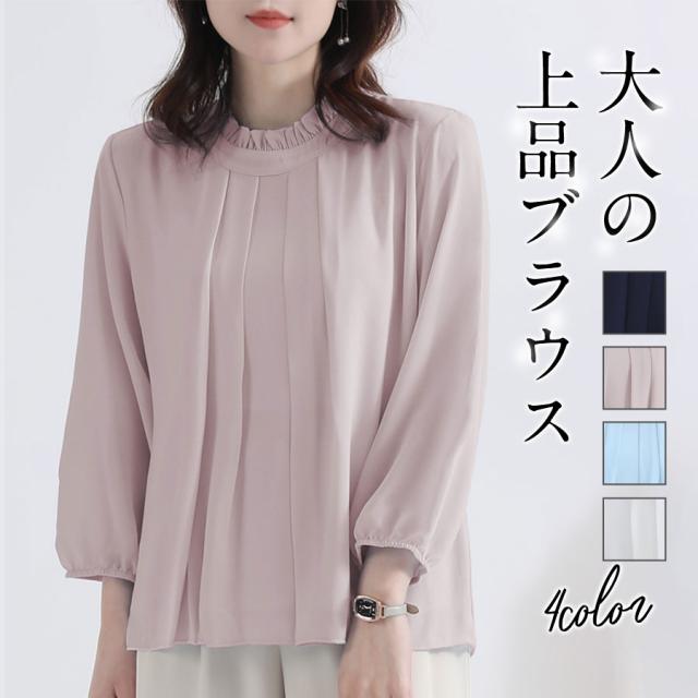 ブラウス トップス レディース 長袖 シフォン フリル フォーマル スタイルアップ 体型カバー シンプル カジュアル きれいめ ビ