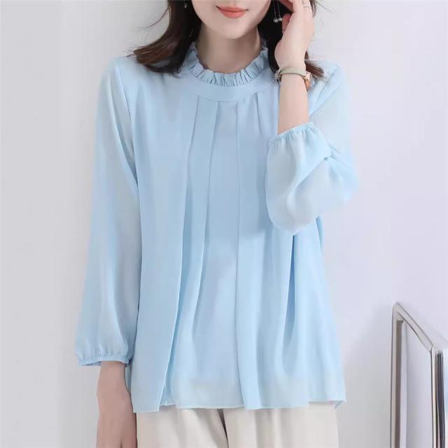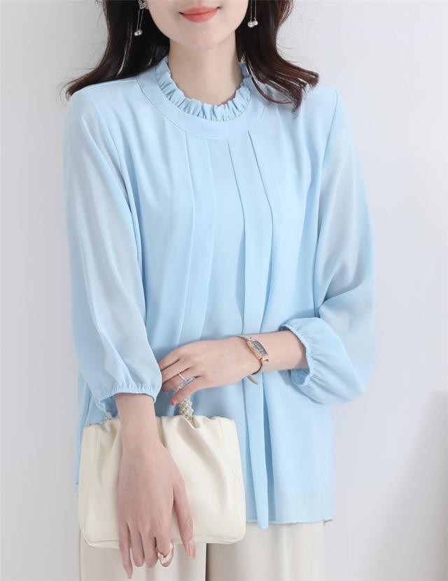 上品、華やかに着こなせる、シフォンブラウス。