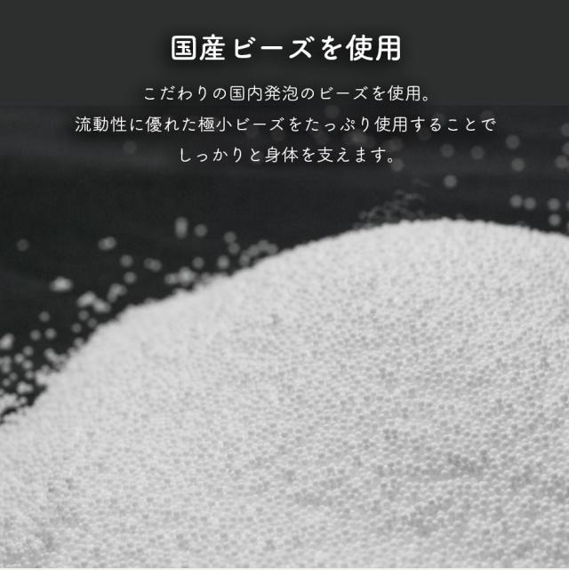 流動性に優れた極小ビーズをたっぷり使用することでしっかりと身体を支えます。