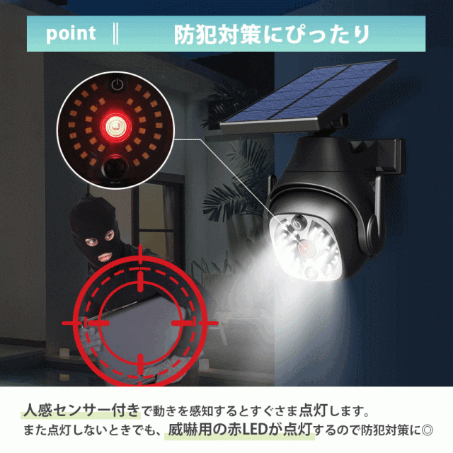 また点灯しないときでも、威嚇用の赤LEDが点灯するので防犯対策に◎