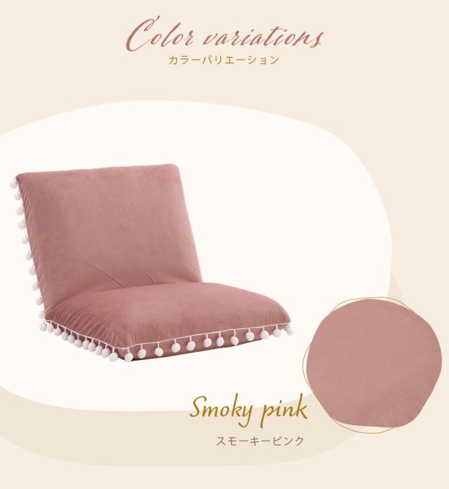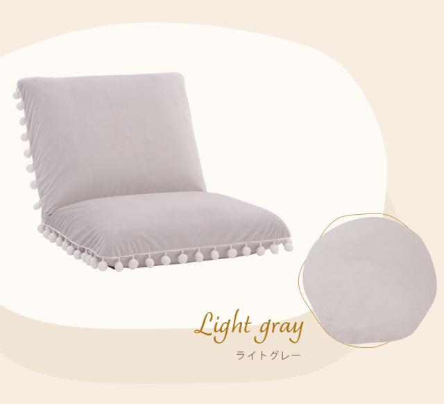 品のあるくすみカラーとポンポンフリルが大人かわいいリクライニング座椅子。