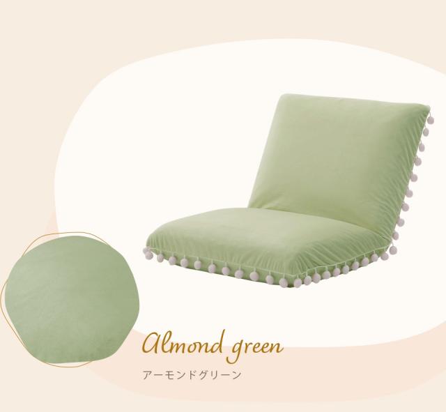 座椅子 おしゃれ コンパクト リクライニング 座いす 日本製 ポンポンフリル付き ベロア 女性 かわいい くすみカラー 単色 パステル 女子座椅子 一人掛け フェミニン 椅子 イス リクライニングチェア リクライニング こたつ 韓国 インテリア 一人暮らし