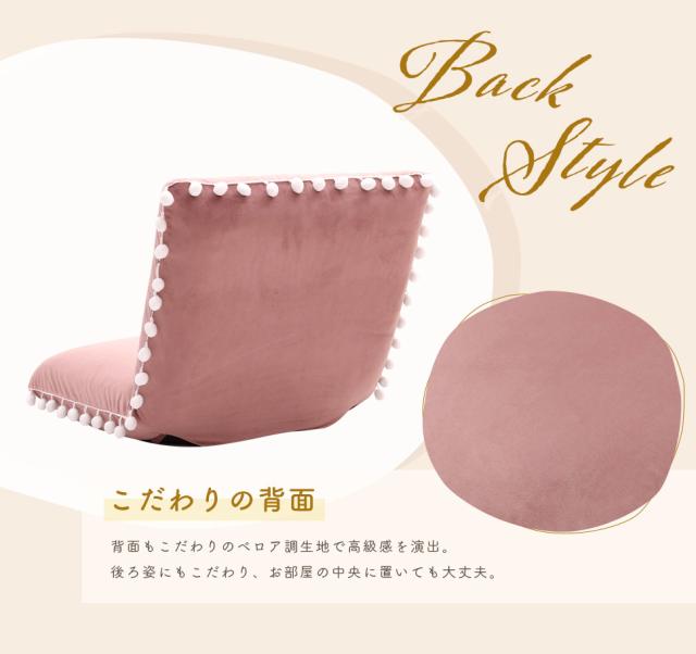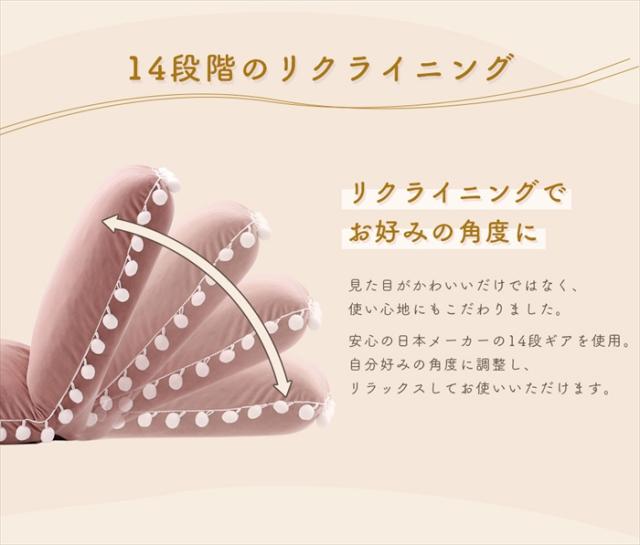 | ・周りについたコロンとしたポンポンがかわいい座椅子 ・14段階リクライニング機能付き ・上質な質感のベロア生地を採用 ・安心安全の日本製 |