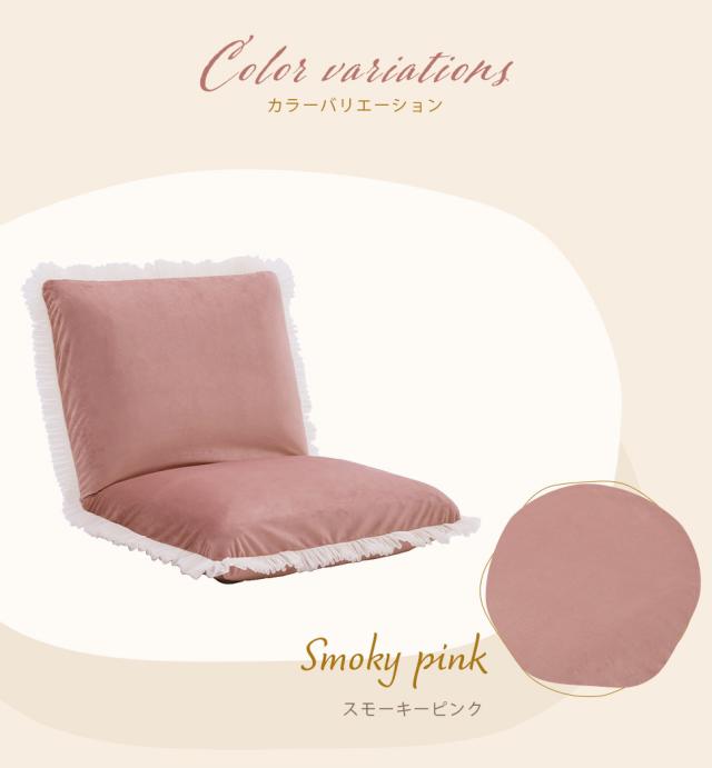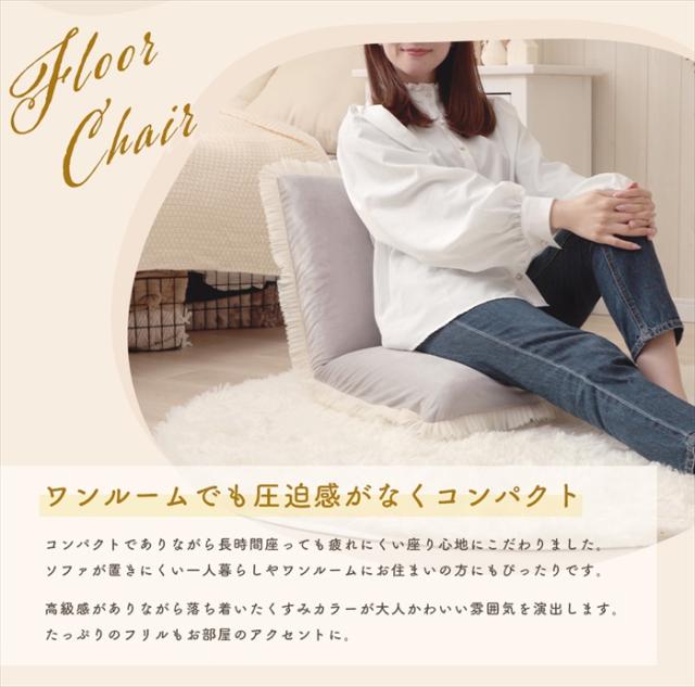 品のあるくすみカラーとプリーツフリルが大人かわいいリクライニング座椅子。