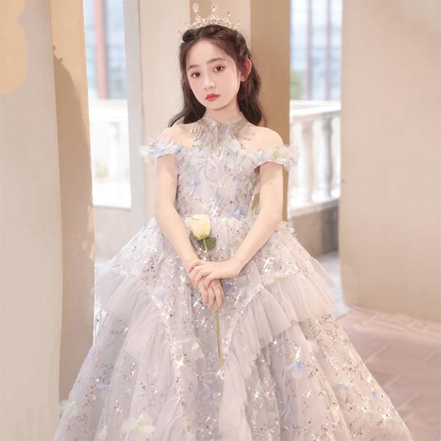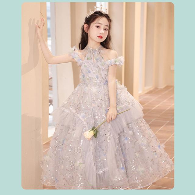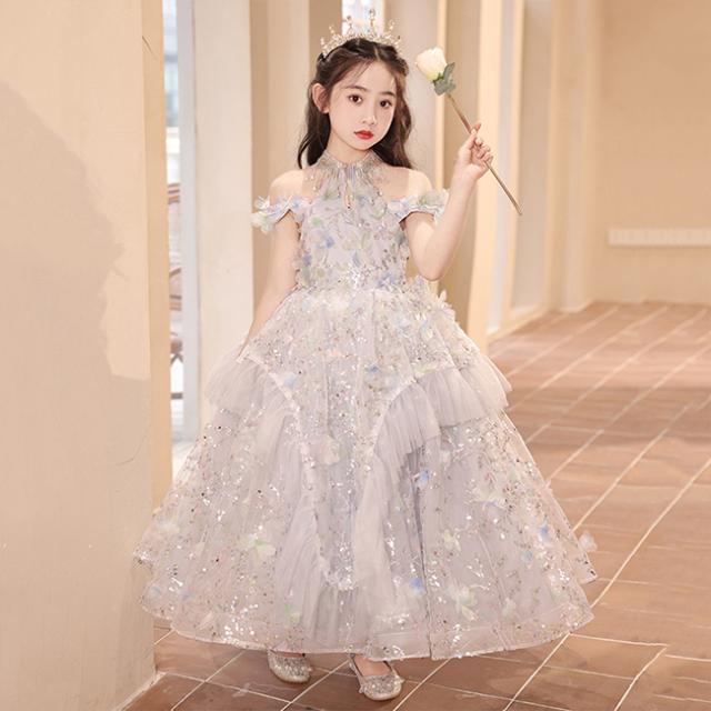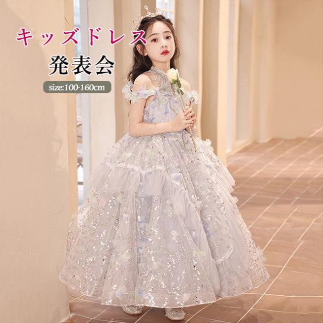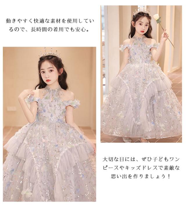 ピアノ発表会 ドレス 中学生 ワンピース 女の子 ドレス 100-160cm 子供 ドレス ロング丈 演奏会ドレス キッズ フラワーガール 結婚式 女の子 レース フォーマル 七五三 姫様 上品 エレガント