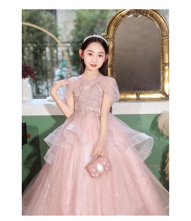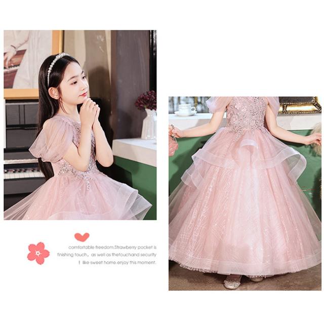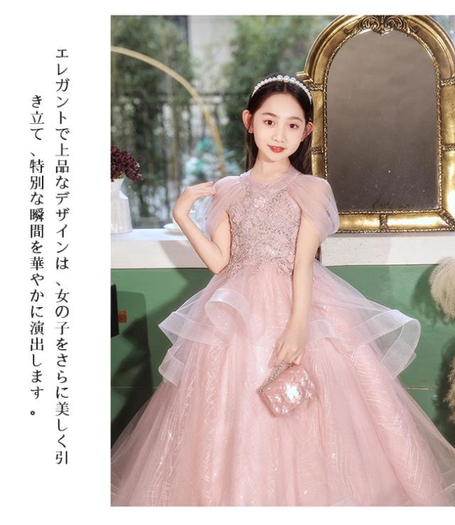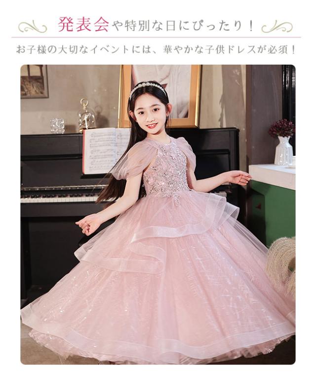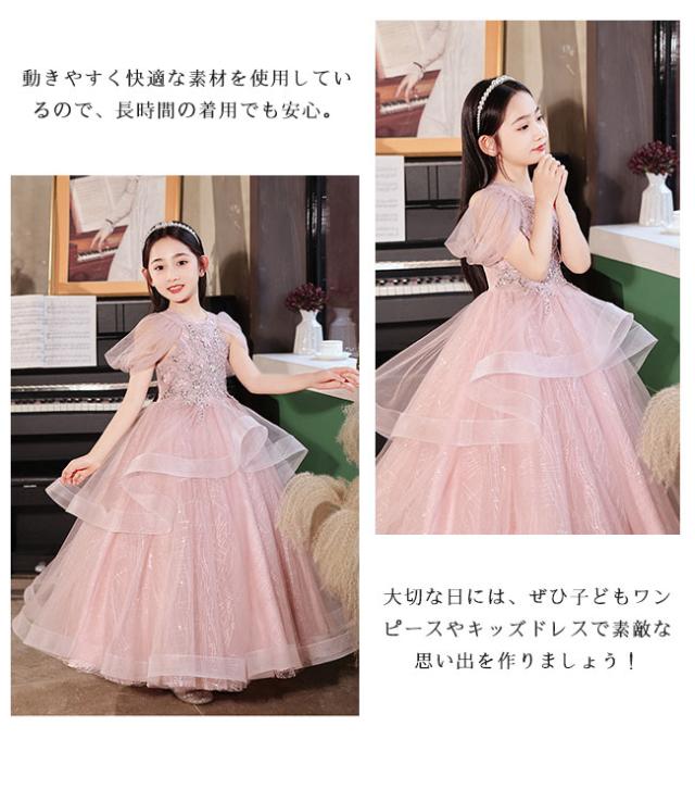 ピアノ発表会 ドレス 中学生 ワンピース 女の子 ドレス 100-160cm 子供 ドレス ロング丈 演奏会ドレス キッズ フラワーガール 結婚式 女の子 レース フォーマル 七五三 姫様 上品 エレガント