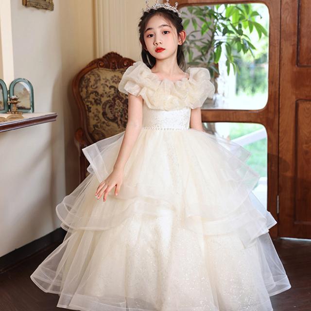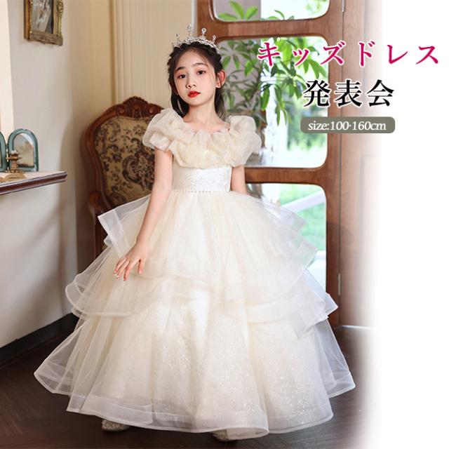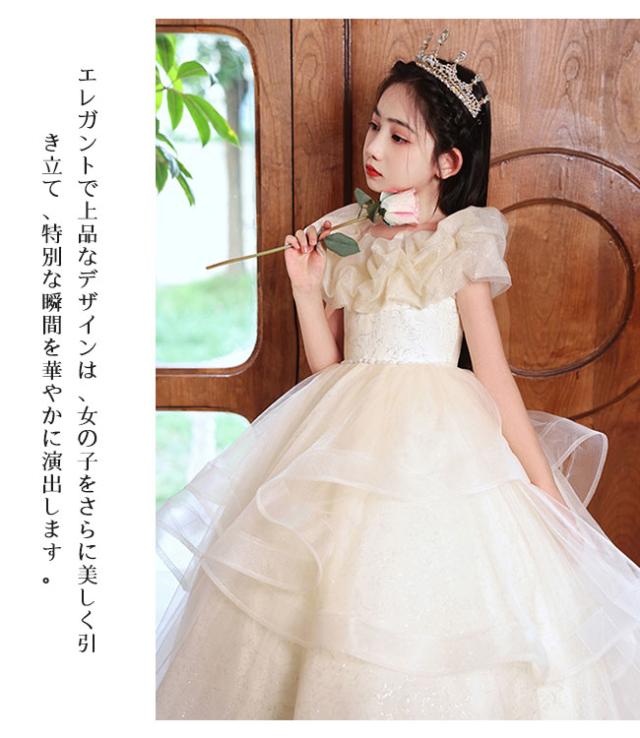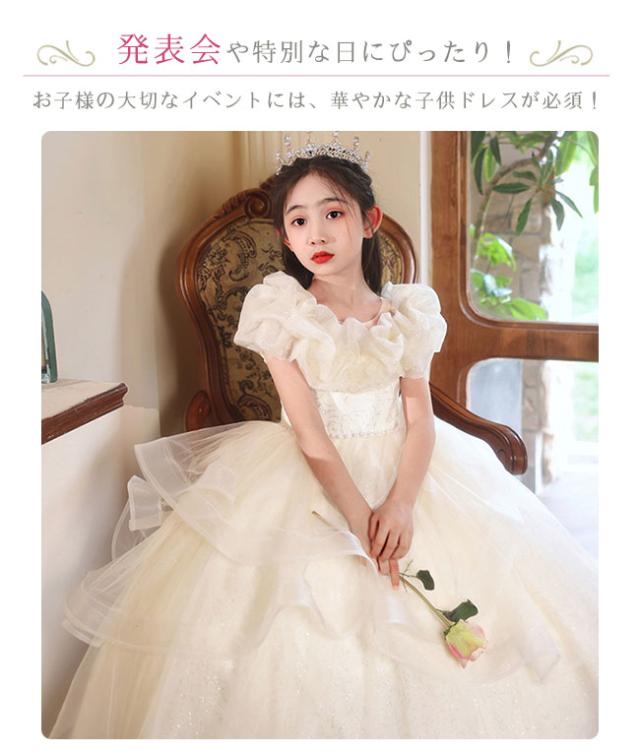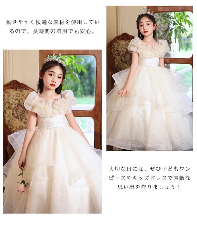 ピアノ発表会 ドレス 中学生 ワンピース 女の子 ドレス 100-160cm 子供 ドレス ロング丈 演奏会ドレス キッズ フラワーガール 結婚式 女の子 レース フォーマル 七五三 姫様 上品 エレガント