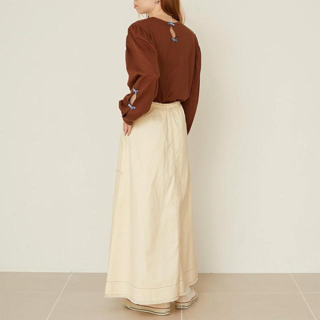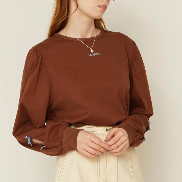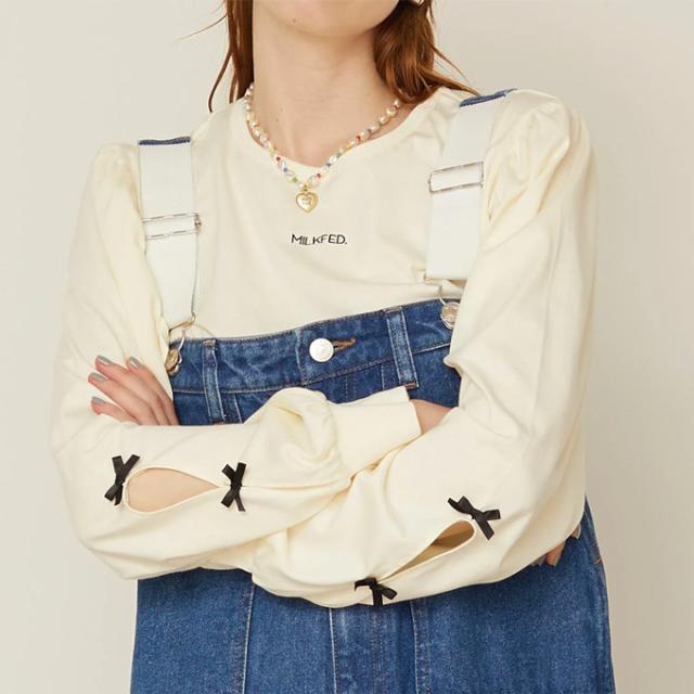 「 MILKFED. ミルクフェド 」 RIBBON L/S TOP リボン カットソー トップス 103251013001 / MILKFED. ミルクフェド Tシャツ ロンT 長袖Tシャツ リボン パフスリーブ /