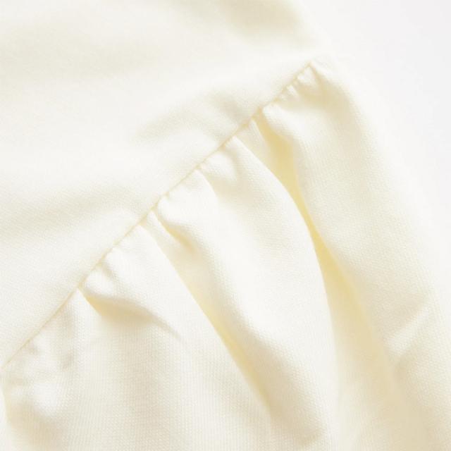 袖山にタックを入れたボリュームのあるパフスリーブで、よりフェミニンな印象に仕上がっています。