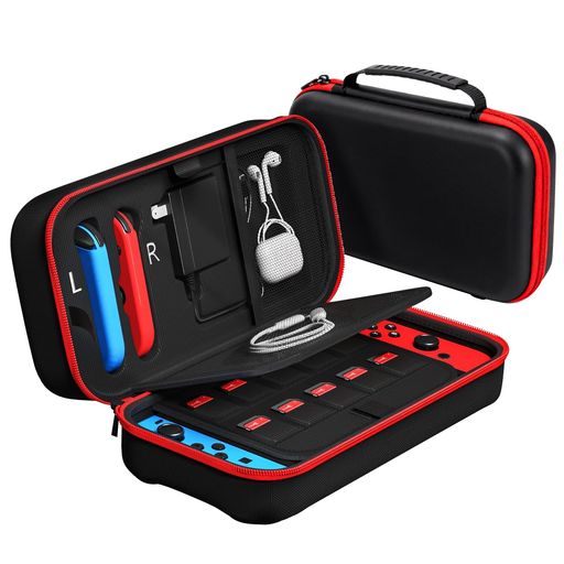 【大容量Switch 2 収納バッグ】このSwitch/Switch OLED用収納ボックスは多機能大容量設計で、ダブルファスナーを採用し、仕切りがあり、手首ロープ設計で、自由に開けやすい。20個のカードバンドカードスロットを内蔵し、大量のゲームカードを簡単に収納し、いつでも異なるゲーム世界を切り替えることができ、同時にJoy-Con、ACアダプタ、Joy-Conハンドル、充電ケーブル、イヤホン、HDMIケーブルなどの各種部品を収納することができる。