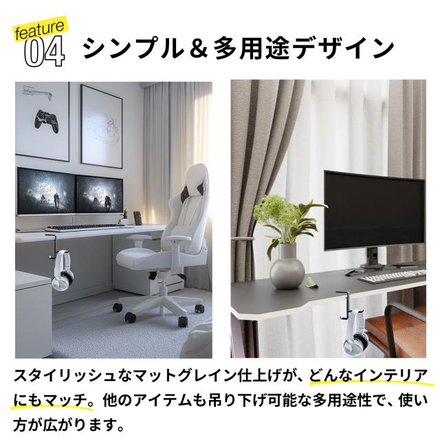 フック デスク フック 黒 引っ掛け 金具 フック おしゃれ ヘッドホン フック デスク カバン フック シングル フック ヘッドセット ホルダー ヘッドフォン ホルダー ヘッドセット ハンガー スタンド ホルダー バッグハンガー ブラック ホワイト