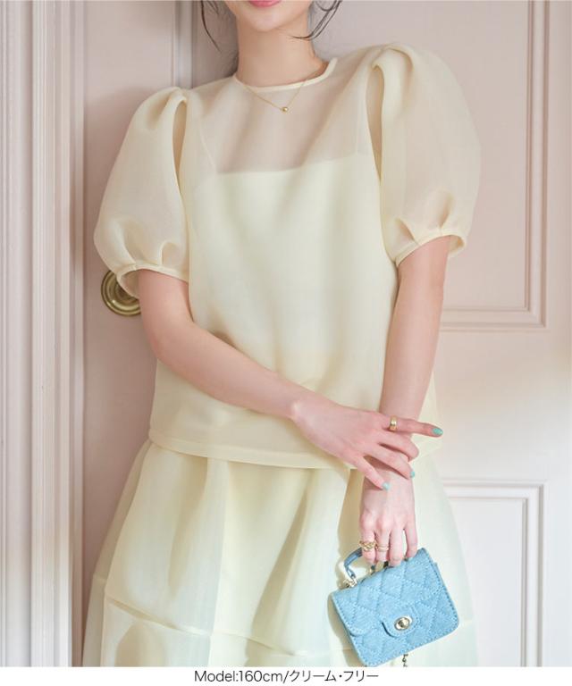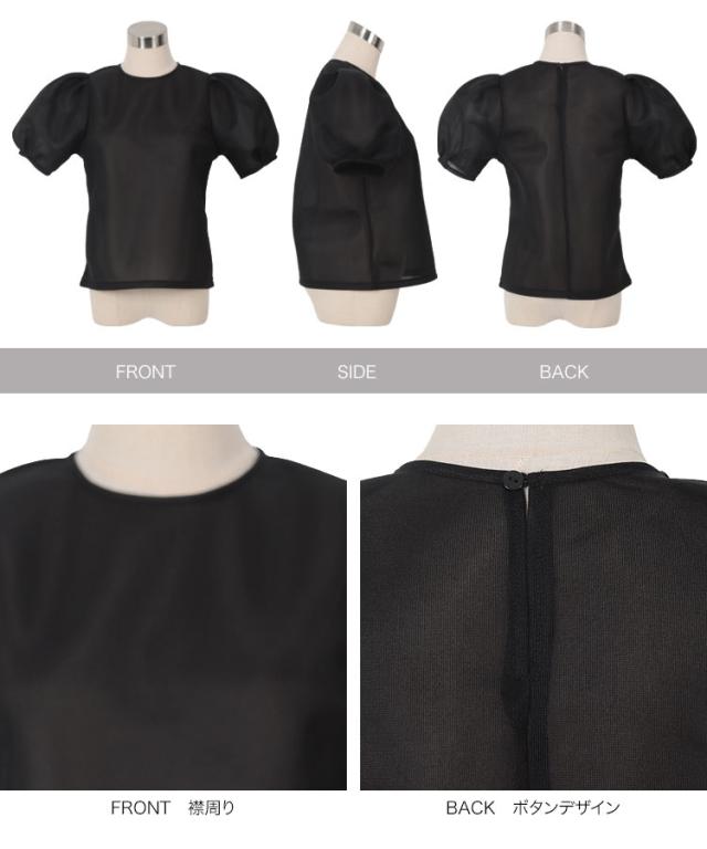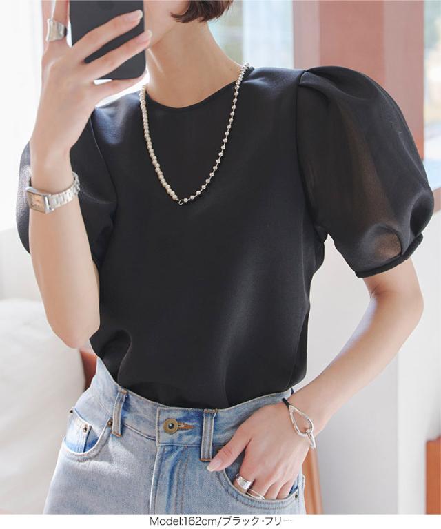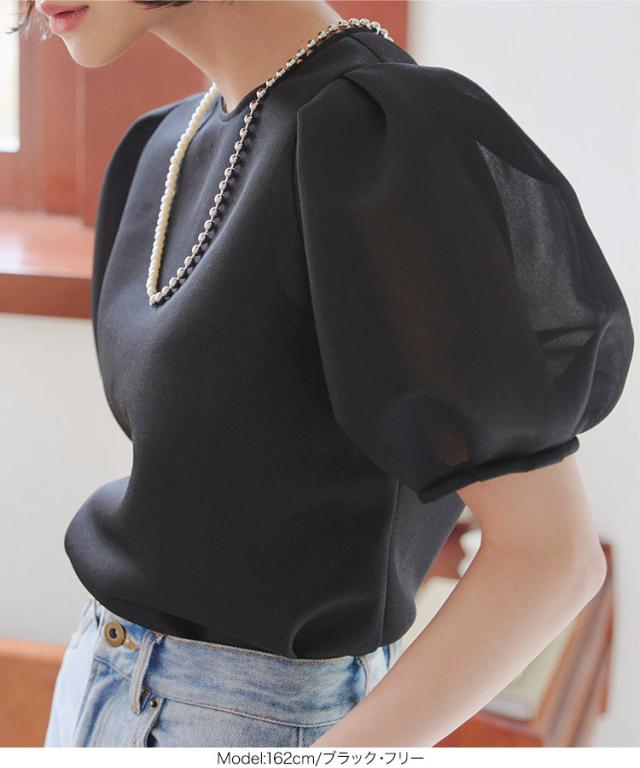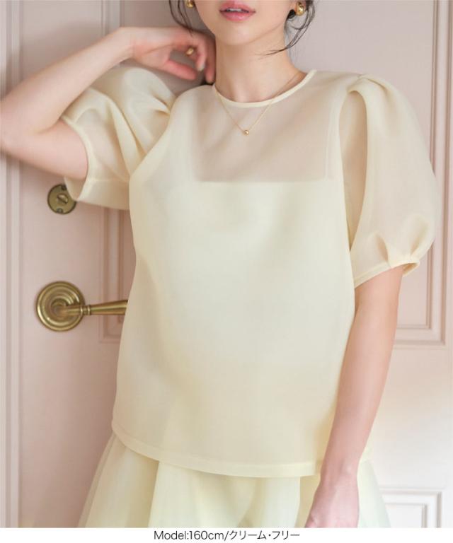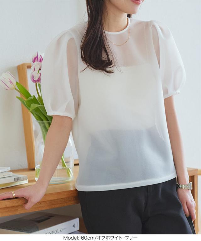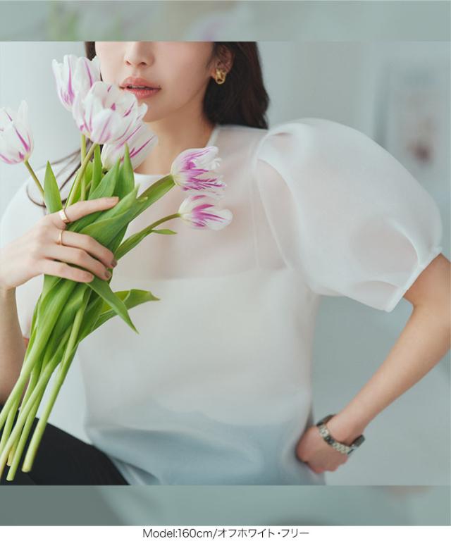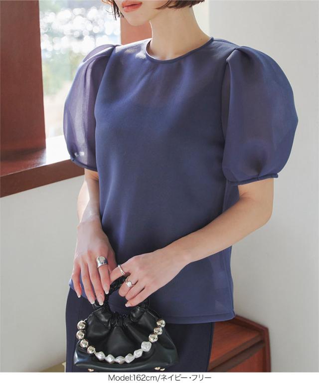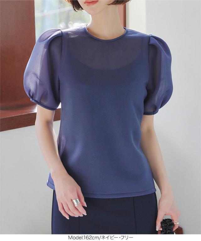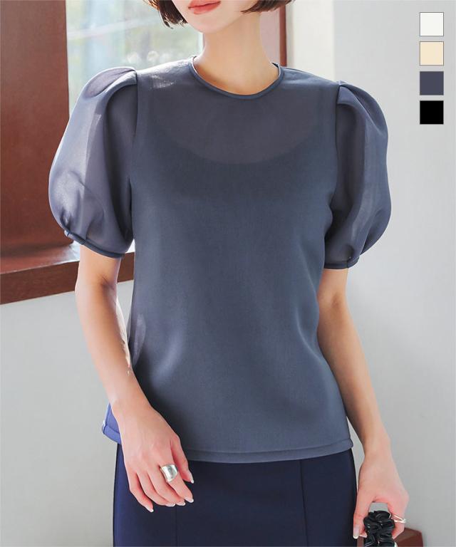 シアーダンボールパフスリーブブラウス C7365 入荷済 レディース 20代 30代 40代 春 ボリューム袖 透け感 シアーダンボールトップス アイボリー オフホワイト クリーム エクリュ ブルー ネイビー ブラック 白 青 黒 ボリューム 立体感