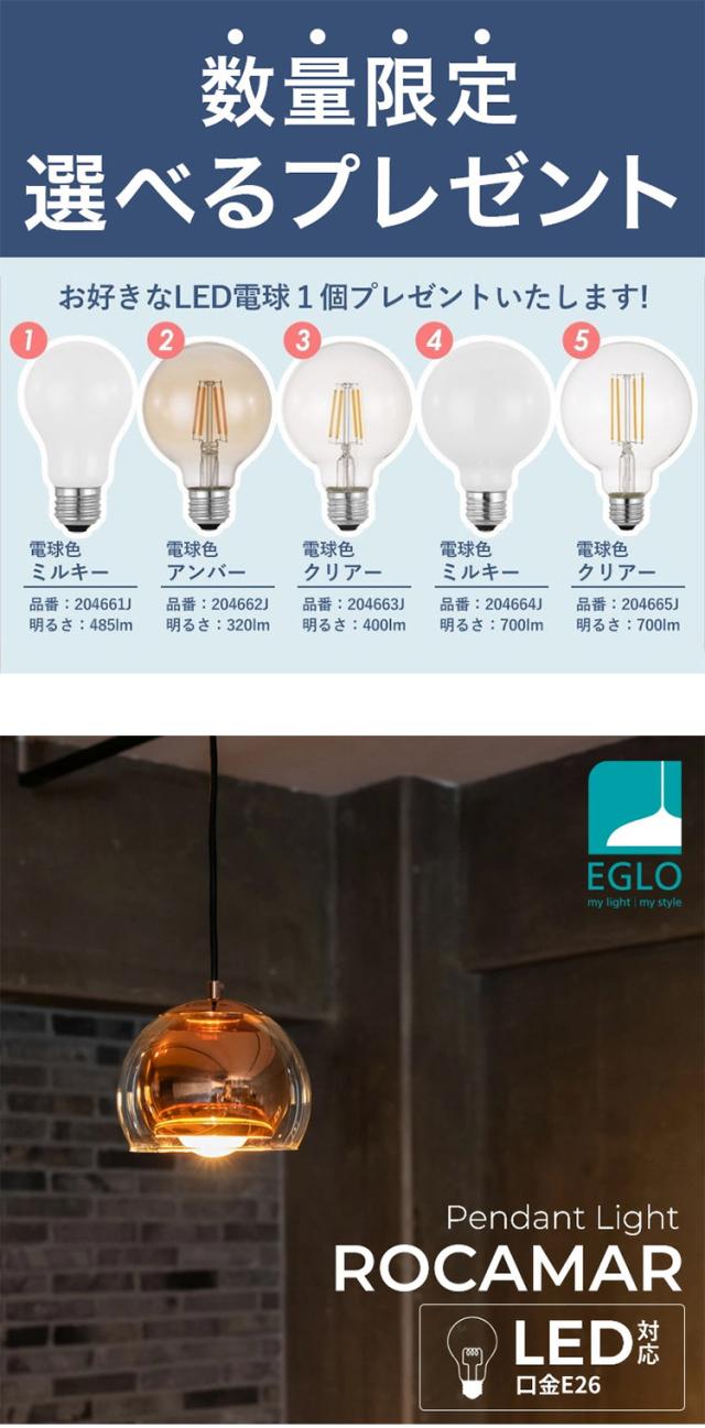 ※EGLO LED電球 G80 E26 320lm 電球色 アンバー (204662J)、G80 E26 400lm 電球色 クリアー (204663J) 推奨