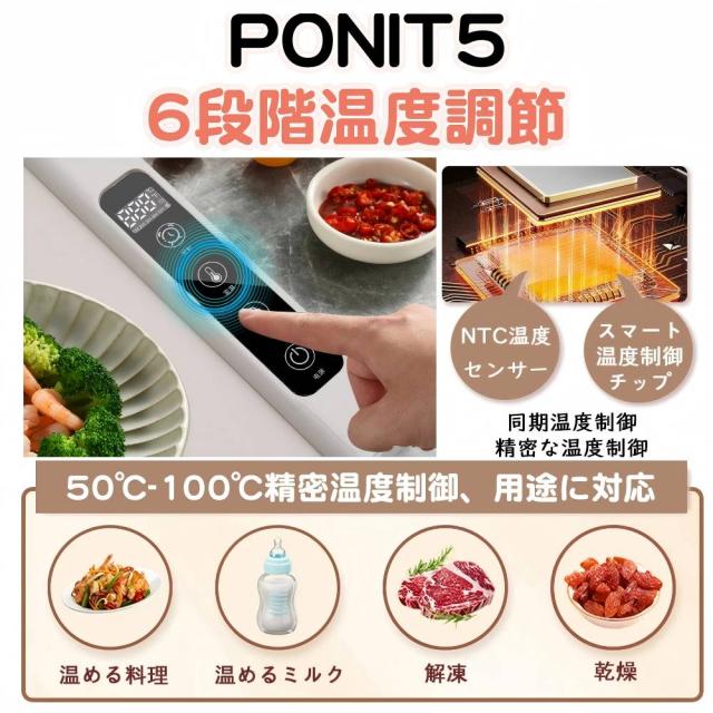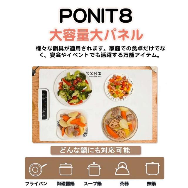 六段階の温度(50℃、60℃、70℃、80℃、90℃、100℃)調整機能で、お好みの温度に簡単に設定。家庭での食卓だけでなく、宴会やイベントでも活躍する万能アイテム。スタイリッシュなデザインと省スペースのコンパクトサイズで、どんなテーブルにもマッチ。おいしくて温かい食事を、いつでもどこでも楽しめます。おいしい時間を、もっと長く。