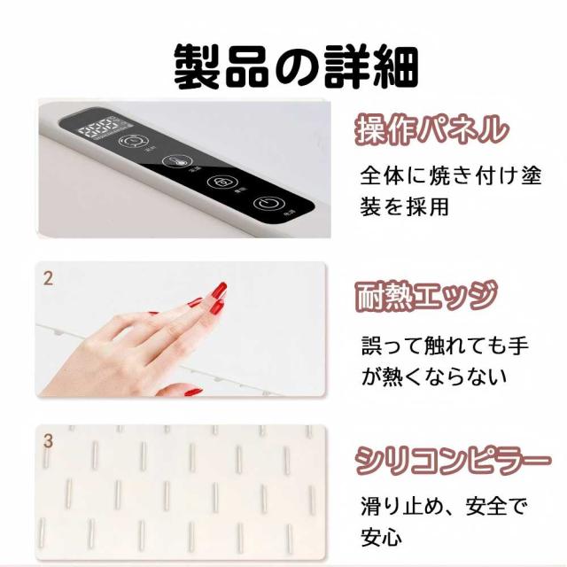 ★【大容量パネル】食品保温トレイの高度な加熱システムで、食べ物を一日中温かく美味しく保ちます。高密度のシリコン柱を備えた大容量パネルは、最大 4-5 トレイの食品を同時に加熱しながら、卓上の火傷や滑りを防ぎます。
