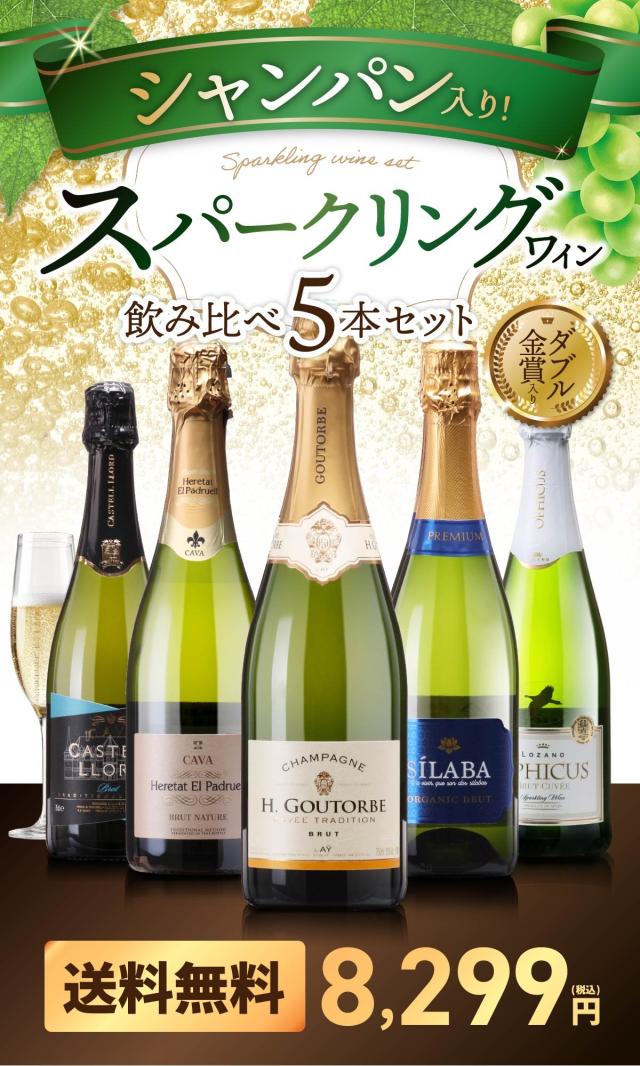 【泡】 シャンパン&金賞ワイン入り!スパークリングワイン5本 辛口 スパークリングワイン 飲み比べ セット シャンパーニュ ハイクオリティ 泡 ワイン お祝い ギフト プレゼント パーティ WineDish(ワインディッシュ) 年末お届け可能 冬ギフト 年末年始