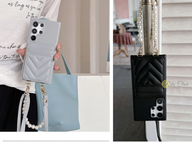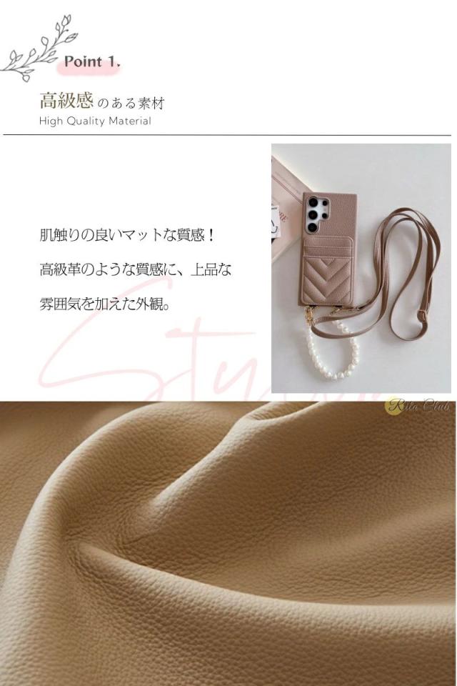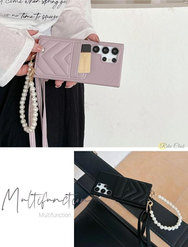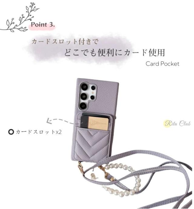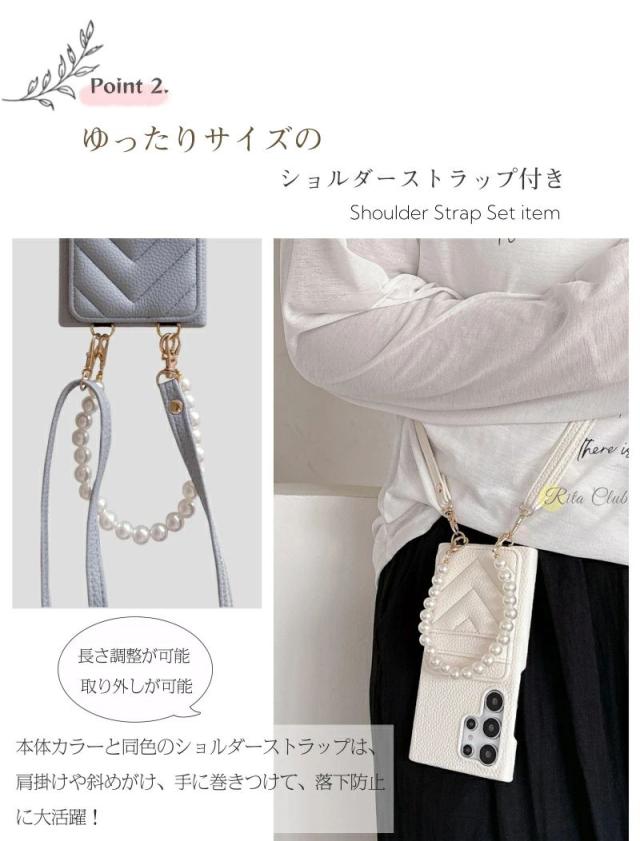 ◆2タイプのストラップ付き。ケースに合わせたショルダーストラップとパールストラップ付きのエレガントなデザインで、機能性もあります。自由な長さに調節できます。ストラップが不要なシーンでも、すぐに外せるのが可能。