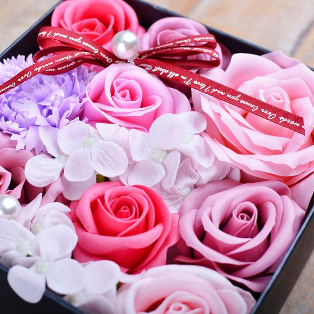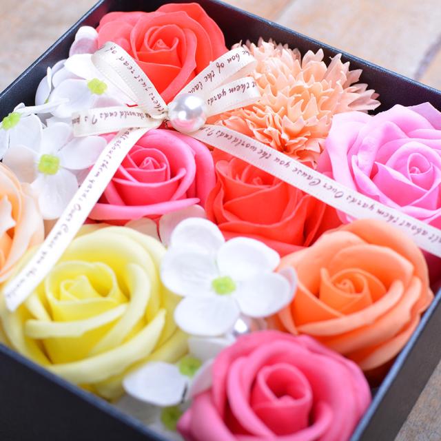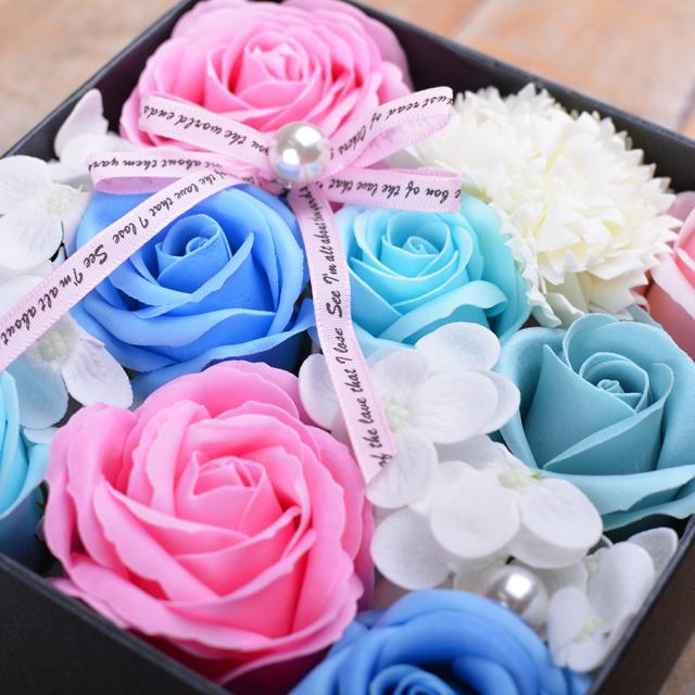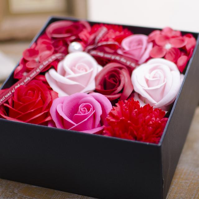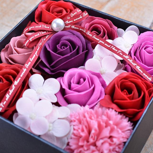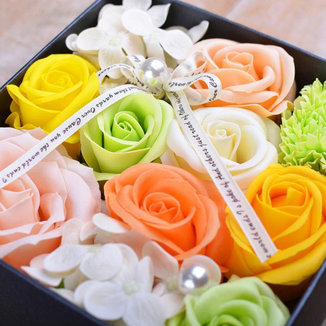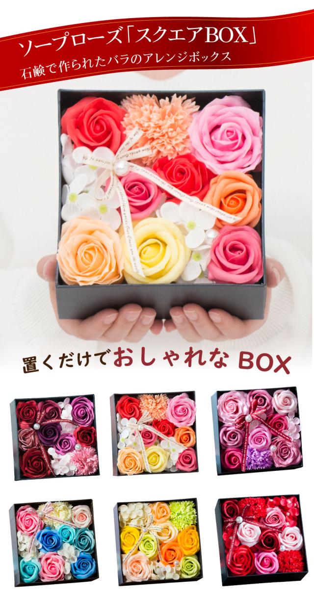 スクエアボックス ソープフラワー シャボンフラワー プレゼント ギフト バラ 花 フラワーアレンジメント 石鹸 香り 造花 プレゼント インテリア 退職祝い お祝い お花 結婚祝い 結婚記念日 誕生日 御供 お供え お盆 お土産