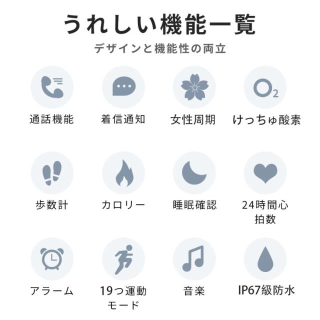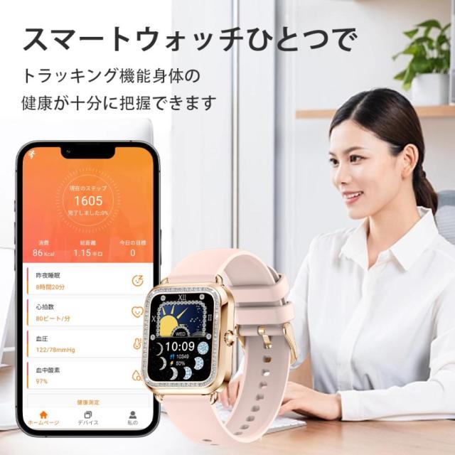 2026年新発スマートウォッチ レディース ヘルススマートウォッチ 座りがち通知 高精度心拍数 着信通知 iPhone
