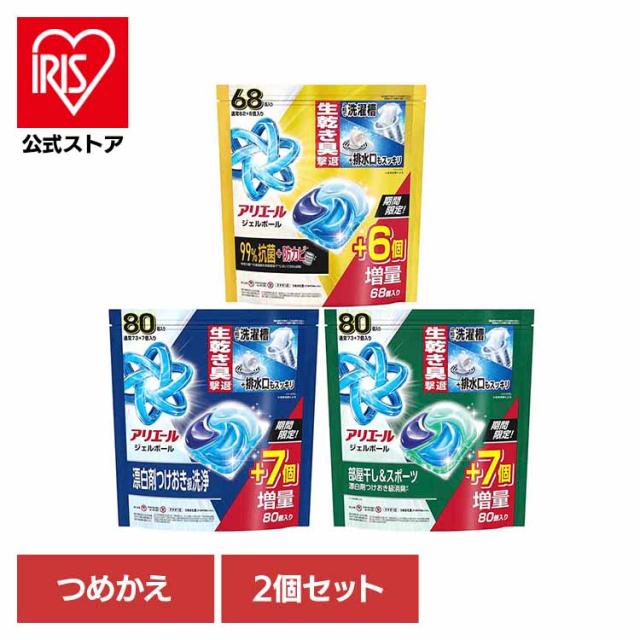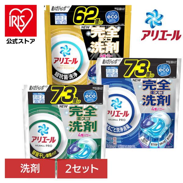 【2個セット】アリエール ジェルボールプロ 超メガジャンボサイズ 詰め替え 完全楽スゴ洗剤 同種2個セット『部屋干し×鉄壁バリア 73個入』『まるごと洗浄消臭 73個入』『超抗菌洗浄 62個入』