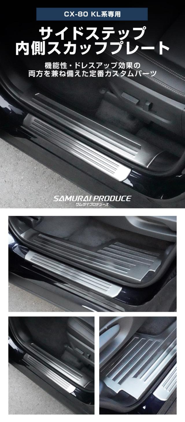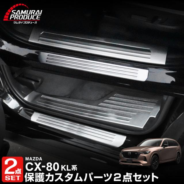 マツダ CX-80 KL系 スカッフプレート サイドステップ内側&外側フロント・リア 保護パーツセット シルバーヘアライン 2026年3月一部改良後対応