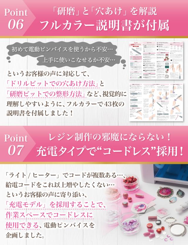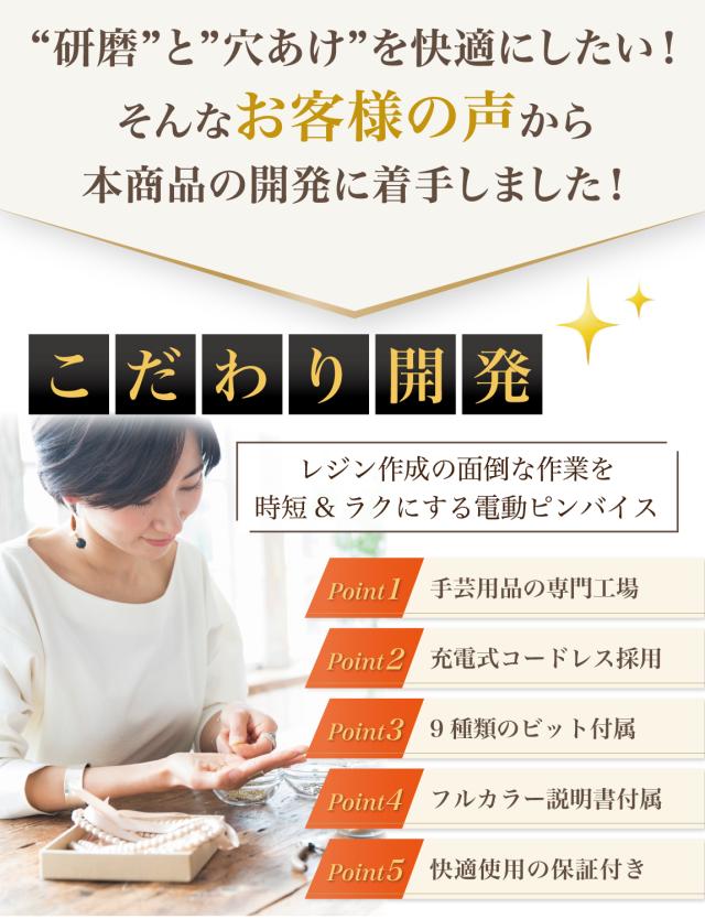 そんなお客様の声から生まれた電動で快適にレジンを楽しめるピンバイスセットです。
