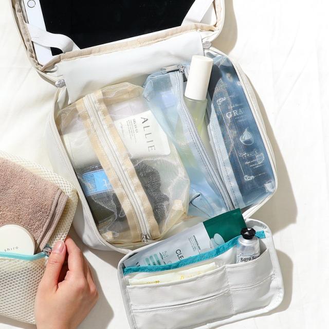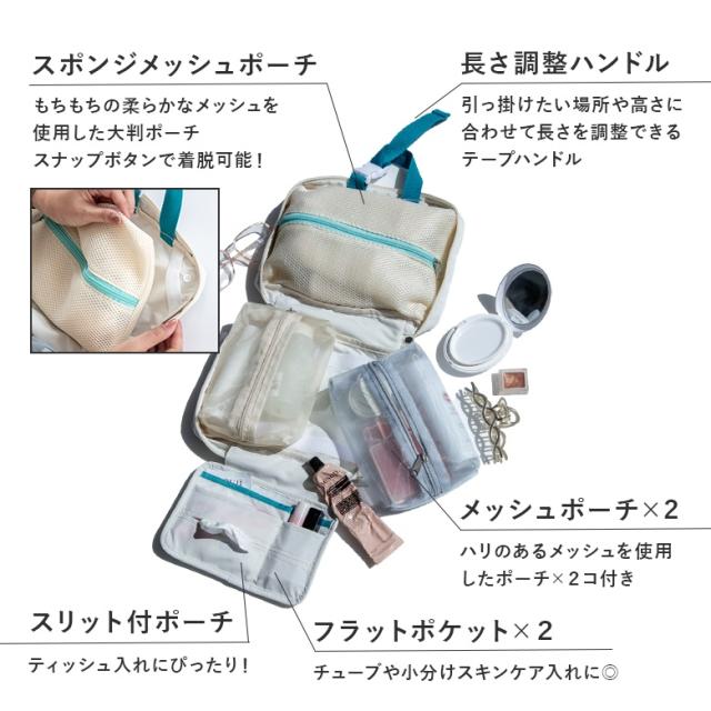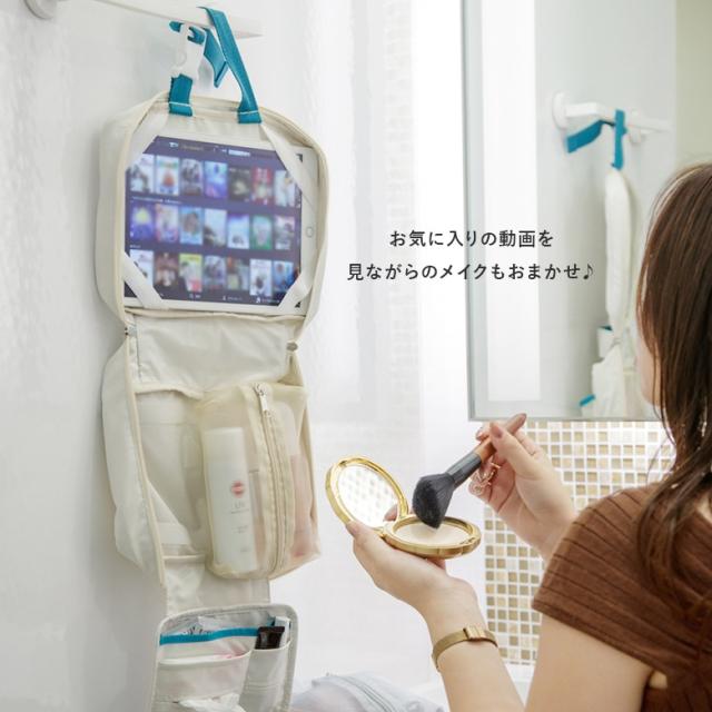 吊り下げポーチ トラベルポーチ 吊るす 掛ける 取り外せる 旅行 トラベル ポーチ 小物入れ 大きめ 大容量 吊り下げ コスメ 洗面用具 メッシュ コスメポーチ フック パッキング 旅行グッズ 防災グッズ コンパクト 便利グッズ おしゃれ かわいい パウダールーム 洗面台 車内 タブレット タブレットホルダー ガジェットケース 大浴場 サウナ 【TP】 シンプル ライフスタイル雑貨 プレゼント 贈り物 ギフト プチギフト 生活雑貨 ファッション雑貨 美容 小物 化粧品 お風呂 バスルーム 温泉 銭湯 お出掛け リゾート レジャー アウトドア キャンプ プール 海 トレンド 流行 ママ 母 母親 ホワイト 白 アイボリー ブラック 黒[ID]25zn06e[万能吊り下げポーチ]