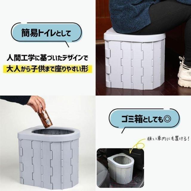 商品情報便座一体型折りたたみ式ポータブルトイレです。 アウトドア、部屋や車の中、災害、断水の際に大活躍します。
