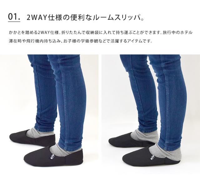メール便送料無料 Wpc. w.p.c. KiU リラックススライドシューズ 【 スリッパ 2way 洗える ルームシューズ 撥水 巾着 持ち運び 折りたたみ 旅行 お出かけ コンパクト 軽量 室内 携帯用 入学式 卒業式 かかとあり】