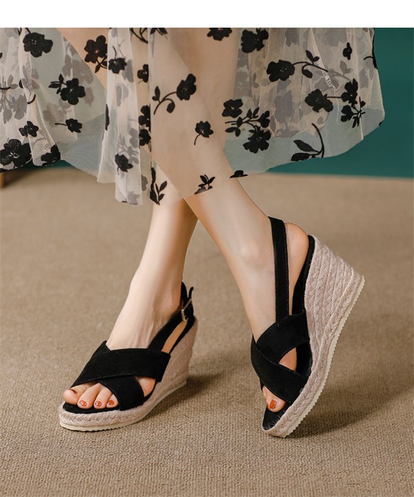 ウェッジソール サンダル レディース ストラップ 厚底 ヒール7cm 厚底サンダル ストラップサンダル バックストラップ 歩きやすい おしゃれ コンフォート 美脚 夏 ブラック 黒 コンフォートサンダル