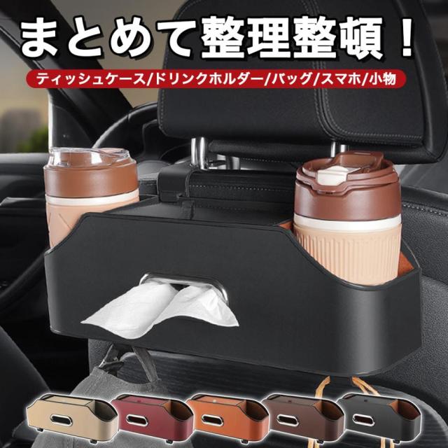 車 ティッシュケース 小物入れ ティッシュボックス おしゃれ ティッシュホルダー 吊り下げ 収納 ドリンクホルダー 後部座席 多機能 カー用品 ドリンクホルダー