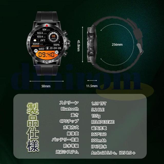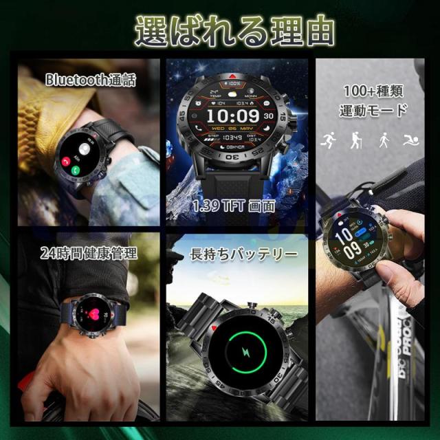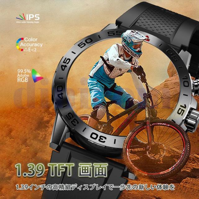 スマートウォッチ 血圧測定 1.39インチ 多機能 ブルートゥース通話 スポーツウォッチ 心拍数 血中酸素 睡眠管理 万歩計 運動モード プレゼント