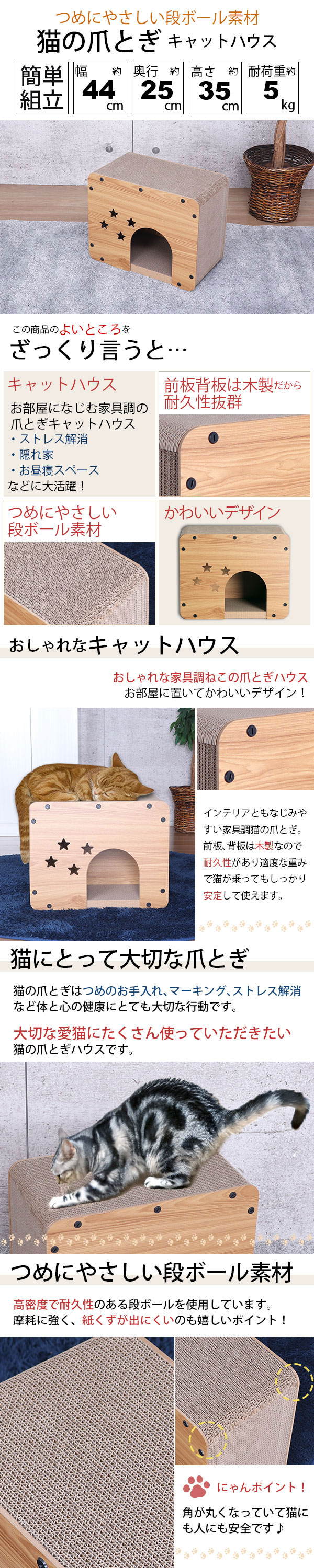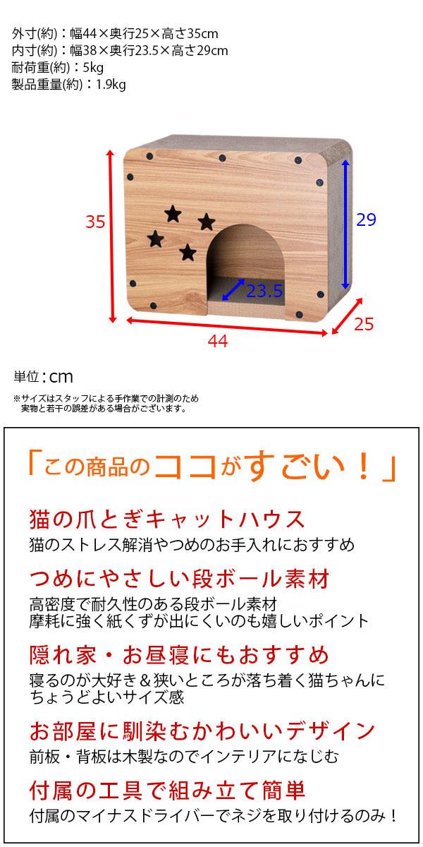 商品名:猫ハウス キャット ハウス 爪とぎ (約)45幅 ペット ハウス 室内用 おしゃれ 猫 ハウス 段ボール 爪研ぎハウス ねこ ベッド 猫 隠れ家 丈夫 コンパクト 猫用ハウス 猫家具 キャットハウス 紙くずが出にくい 幅44cm 奥行25cm 高さ35cm かわいい 星型 スター 木目調 ナチュラル ペット家具 猫 猫用家具 室内 ペットハウス 猫用ハウス ペット用ハウス ネコ 爪とぎ ダンボール ハウス ネコ 小窓付き ペット ベッド ペット用ベッド 猫用ベッド キャットベッド 猫家具 猫小屋 屋内 省スペース 木製 新生活 一人暮らし ワンルーム リビング 寝室 シンプル ストレス発散 ストレス解消 運動不足解消 リラックス 秘密基地 耐久性 無臭