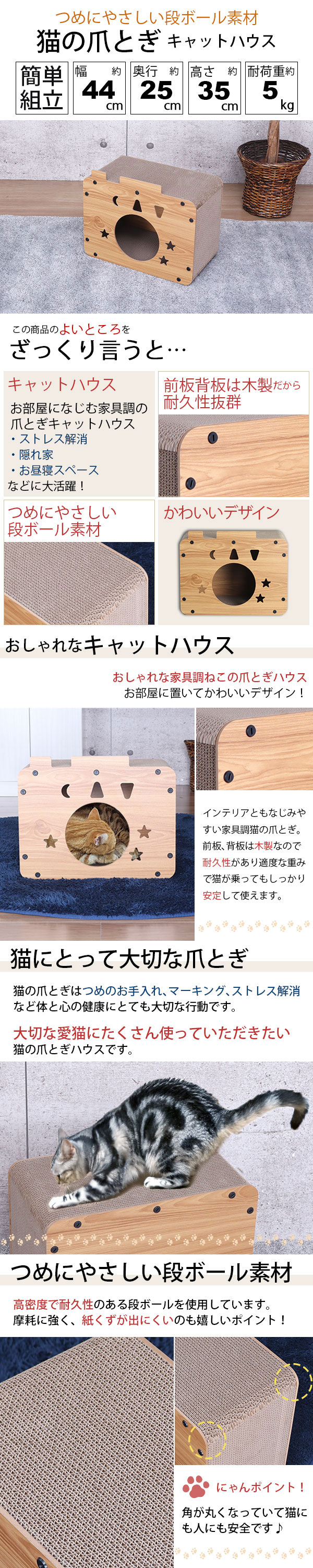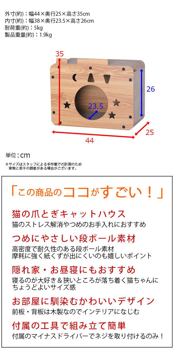 商品名:猫ハウス キャット ハウス 爪とぎ (約)45幅 ペット ハウス 室内用 おしゃれ 猫 ハウス 段ボール 爪研ぎハウス ねこ ベッド 猫 隠れ家 丈夫 コンパクト 猫用ハウス 猫家具 キャットハウス 紙くずが出にくい 幅44cm 奥行25cm 高さ35cm かわいい 星型 三日月 木目調 ナチュラル ペット家具 猫 猫用家具 室内 ペットハウス 猫用ハウス ペット用ハウス ネコ 爪とぎ ダンボール ハウス ネコ 小窓付き ペット ベッド ペット用ベッド 猫用ベッド キャットベッド 猫家具 猫小屋 屋内 省スペース 木製 スター スペース 宇宙 新生活 一人暮らし ワンルーム リビング 寝室 シンプル ストレス発散 ストレス解消 運動不足解消 リラックス 秘密基地 耐久性 無臭