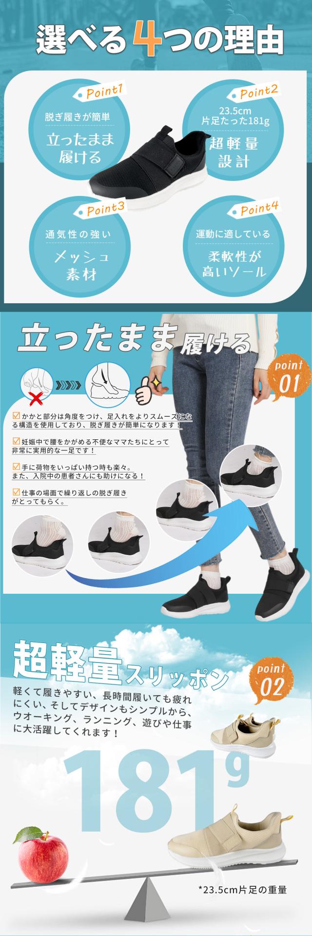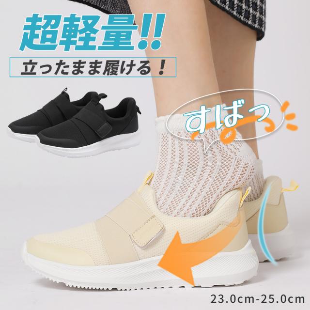 スリッポン スニーカー レディース 超軽量 立ったまま履ける レディース 通気 高齢者 スポーツシューズ ナースシューズ ウォーキングシューズ カジュアルシューズ カップル靴 23.0cm-25.0cm E相当