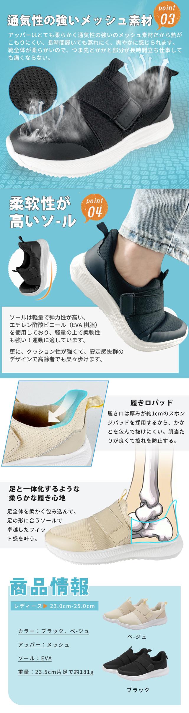 【立ったまま履ける】かかと部分は角度をつけ、足入れをよりスムーズになる構造を使用しており、脱ぎ履きが簡単になります!