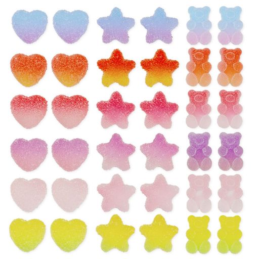 素材:樹脂 カラー:6色(グラデーション) 数量:36個 形状:ハート・星・クマ サイズ:星・ハートは約1.7cm、クマは約1.1×1.7cm
