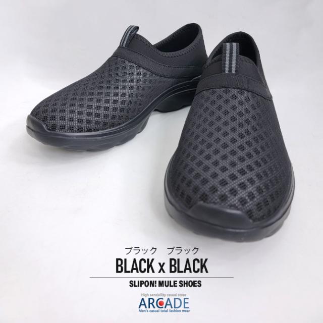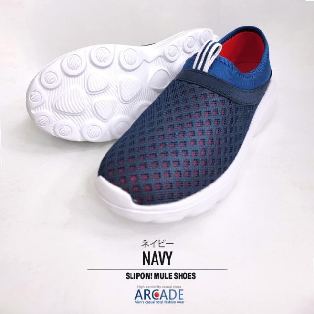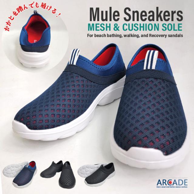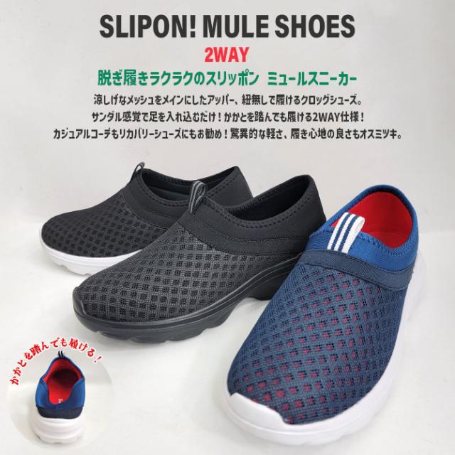 スリッポン ミュールスニーカー メンズ ミュールシューズ クロッグシューズ 無地 メッシュ クッションソール 靴 メンズ靴 リカバリーサンダル かかとを踏んでも履ける2WAY