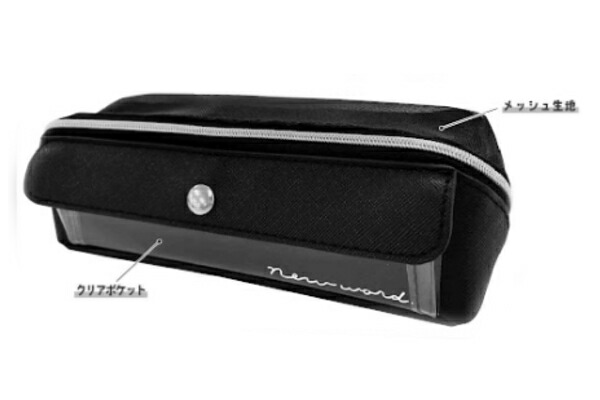 クラ129825 【オリジナル】ポケット付きセパレートボックスペンケース【ブラック】【黒】【ポーチ】【ペン入れ】【筆箱】【収納】【文房具】【学校】【勉強】【雑貨】【グッズ】【かわいい】