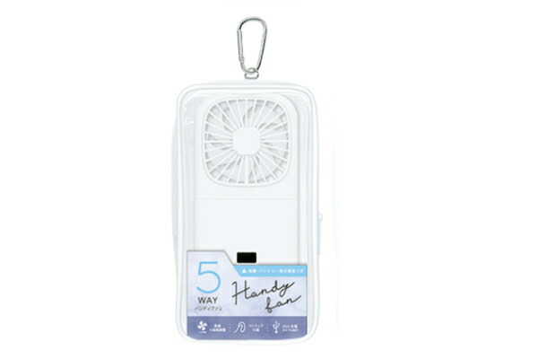 クラ128769 【オリジナル】ポーチ入り5WAYハンディファン【ホワイト】【白】【ケース】【扇風機】【コンパクト】【ファン】【ミニ】【小型】【卓上】【首掛け】【暑さ対策】【涼しい】【クール】【雑貨】【グッズ】【かわいい】