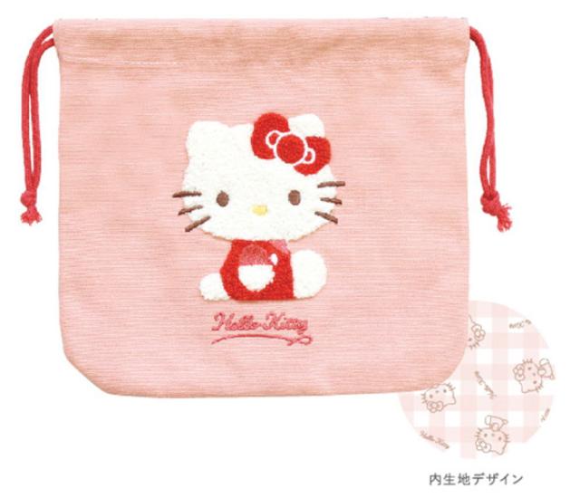 【サンリオキャラクターズ】サガラ刺繍巾着ポーチ【ハローキティ】【かばん】【ケース】【小物入れ】【袋】【収納】【子供】【キッズ】【お出かけ】【アウトドア】【雑貨】【グッズ】【か