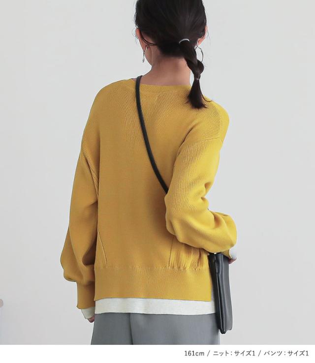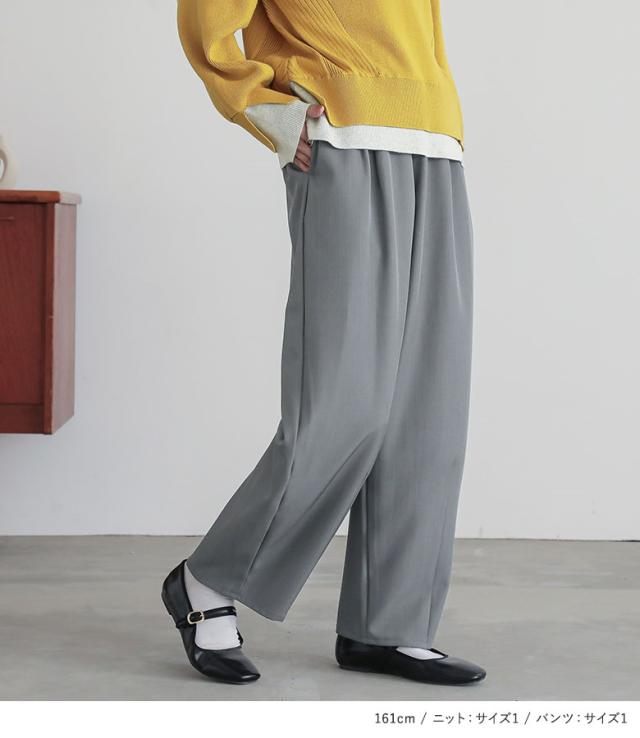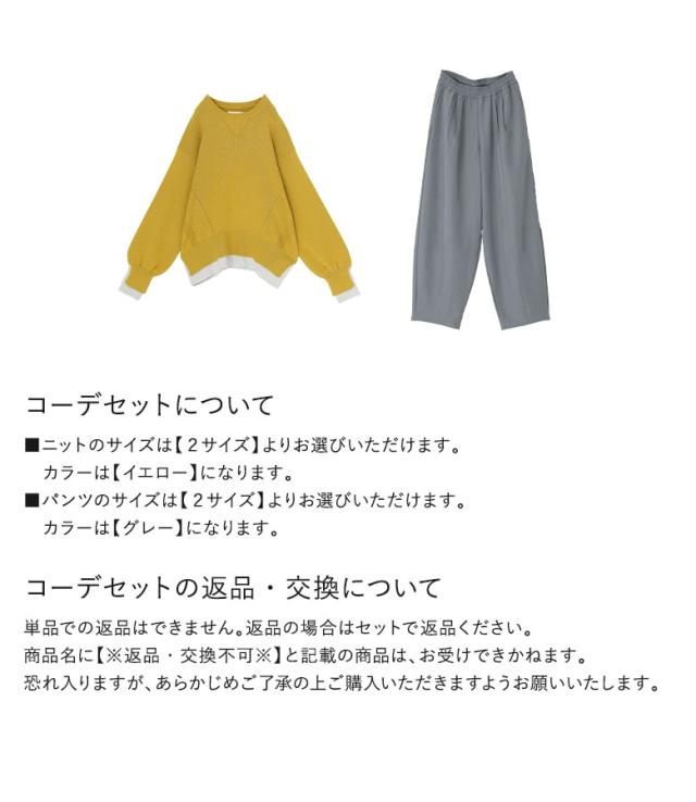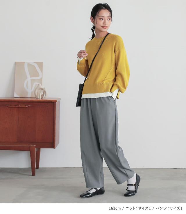 【送料無料】『コクーンイージーパンツ×配色スリットリブニットコーデ2点SET』【メール便不可】【40】[2点コーデセット 2025 レディース パンツ ボトムス ズボン ロング丈 ニット トップス セーター クルーネック]