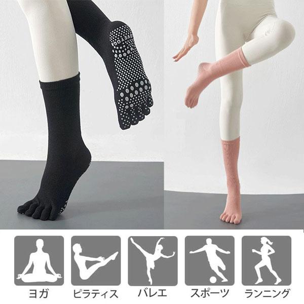 ヨガソックス 5本指【2足セット】スポーツソックス ピラティス 単色 無地 ヨガ靴下 滑り止め 抗菌消臭 靴下 高機能 通気性 おしゃれ カバー レディース ハイソックス バレエ ホットヨガ フィットネス 防臭 速乾 冷え スポーツ フィットネス ストレッチ エクササイズ