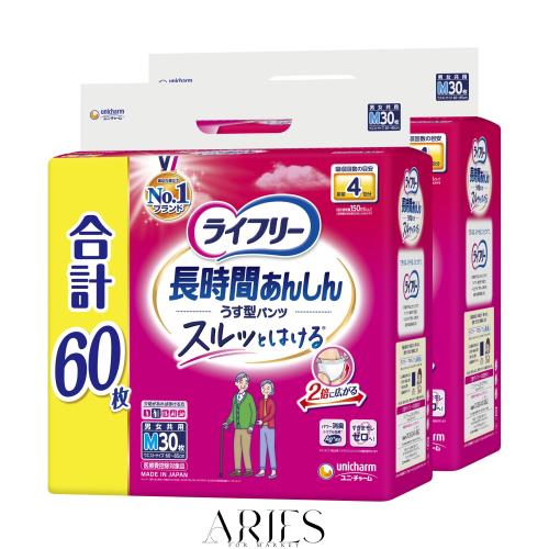 【大人用紙パンツ Mサイズ】ライフリー 長時間あんしんうす型パンツ 4回吸収 60枚(30枚x2) 大人用紙オムツ [ケース品]【Amazon.co.jp限定