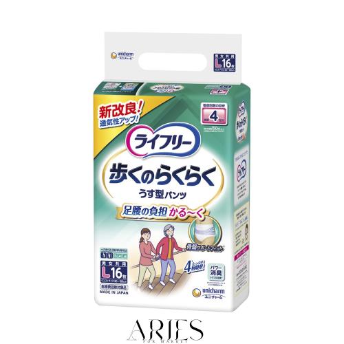 ◆商品名:ライフリー パンツタイプ 歩くのらくらくうす型パンツ Lサイズ 16枚 4回吸収 大人用おむつ 【一人で歩ける方・介助があれば歩ける方】