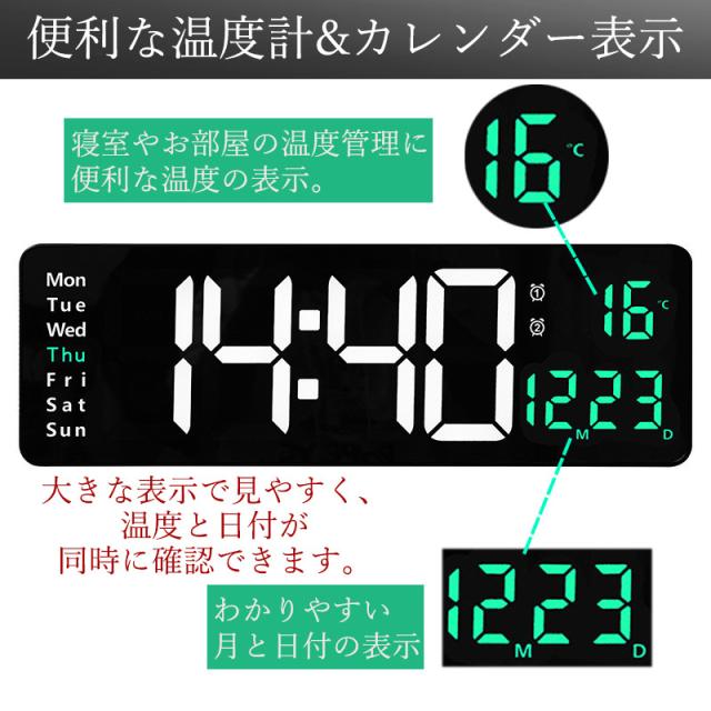 デジタル時計 目覚まし時計 16インチ 大型 LED 時計 大きな文字 置き時計 壁掛け時計 リモコン付き 温度計 アラーム タイ