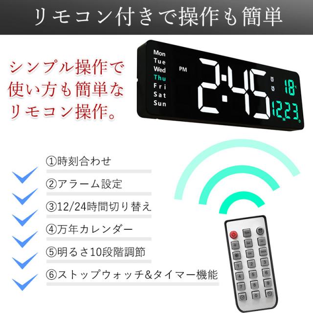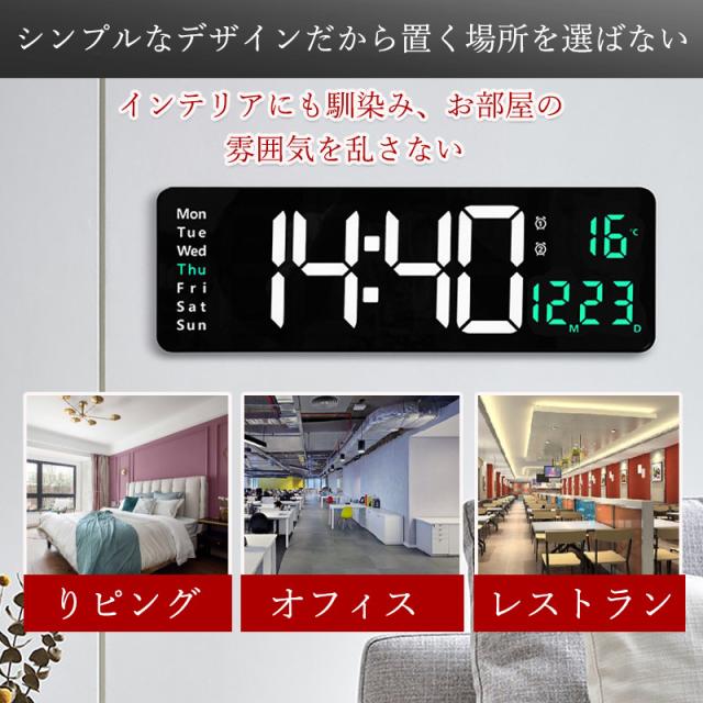 【キーワード】デジタル時計 時計 壁掛け デジタル 壁掛け時計 大型 目覚まし時計 ライト 静か リモコン付き アラーム 温度計 大画面 12/24時間 文字 大きい おしゃれ モダン 北欧 韓国 インテリア 雑貨 見やすい 大きな文字 LED 表示 シンプル 部屋 寝室 オフィス用 タイマー 光る 照明 リビング