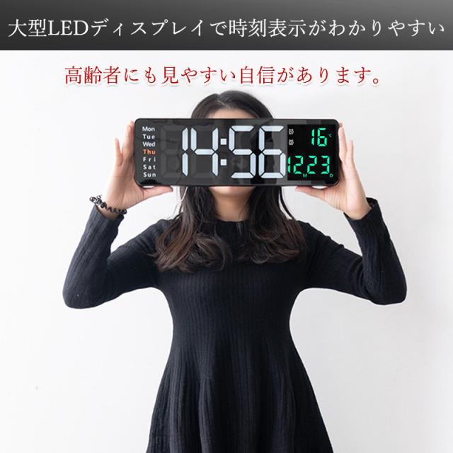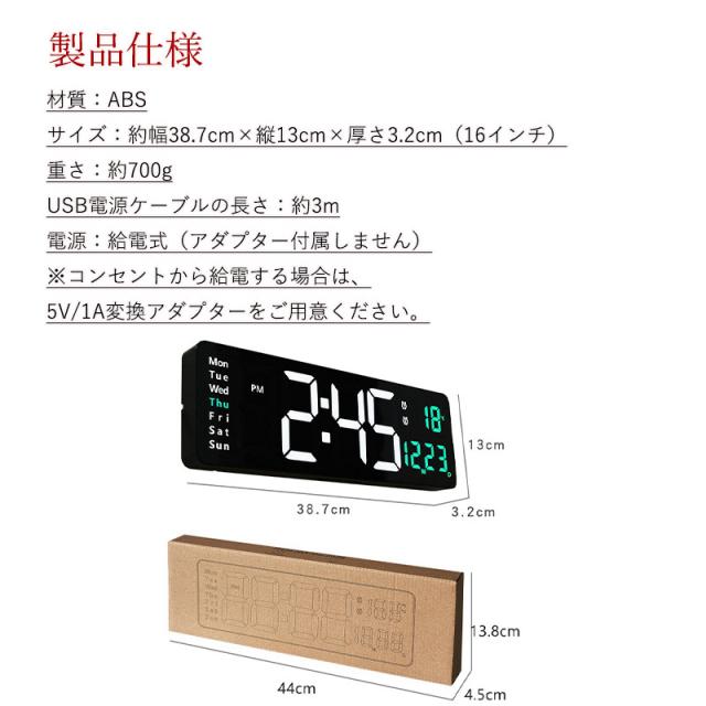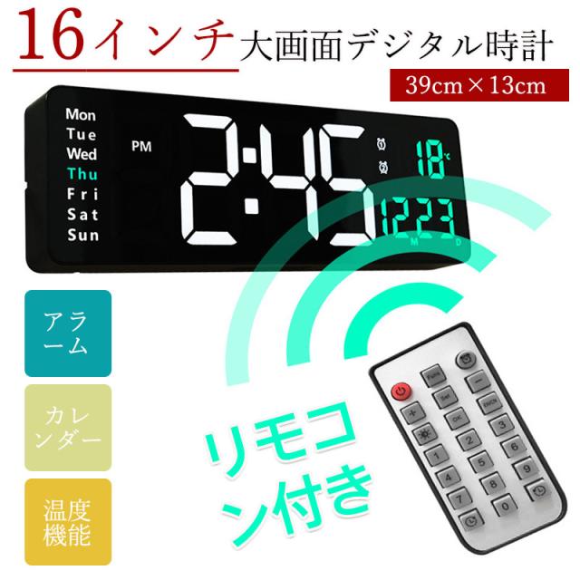 デジタル時計 目覚まし時計 16インチ 大型 LED 時計 大きな文字 置き時計 壁掛け時計 リモコン付き 温度計 アラーム タイ