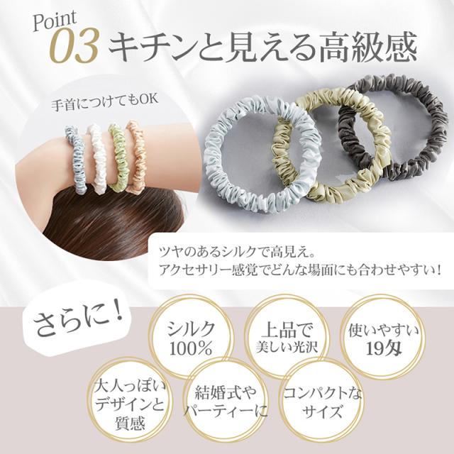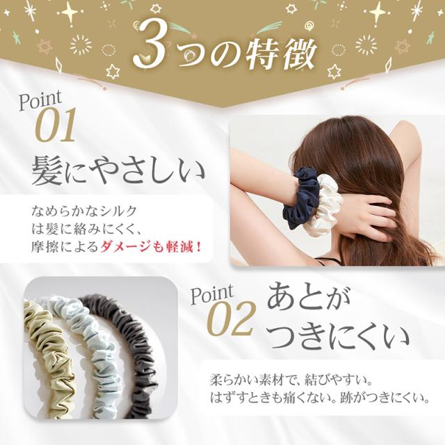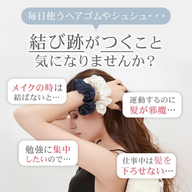ヘアゴム シュシュ シルク シルク100% ヘアゴム 大人っぽい シュシュ ヘアアクセサリー 髪留め まとめ髪 ポニーテール シンプル かわいい ファッション雑貨 レディース 高級感 睡眠 就寝前 シルク製 Lサイズ 110MM*45MM